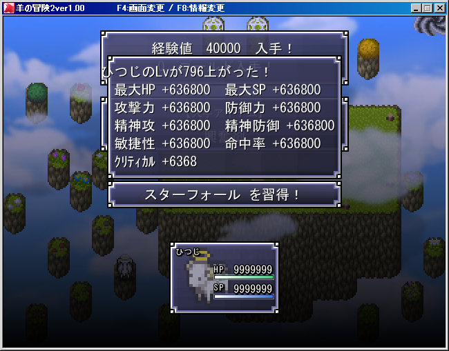 レベルを99999にすると「スターフォール」という特殊技能を習得する。